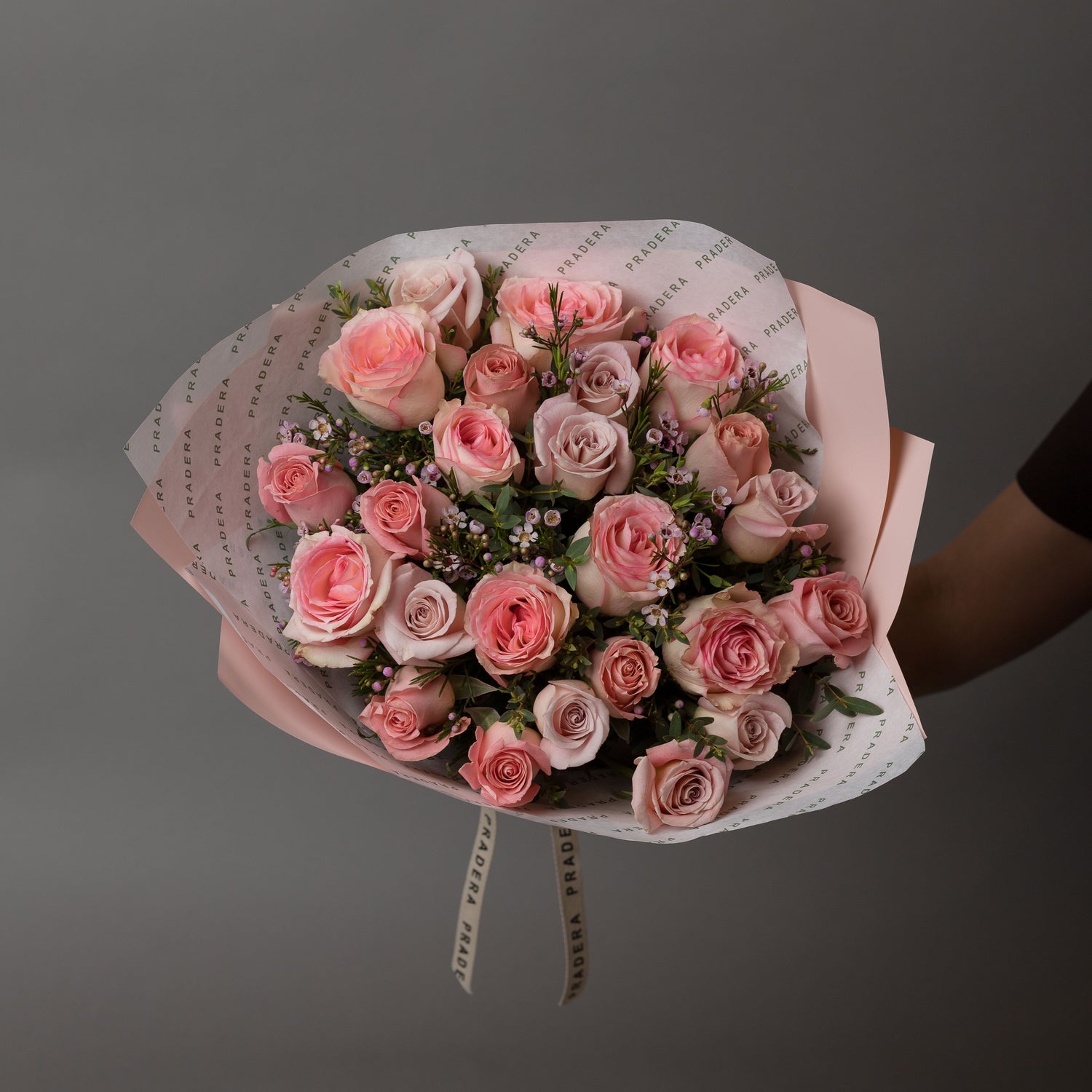 Ramo de 24 rosas rosas — Las fotos solo sirven de ejemplo, te garantizamos que estará hecho con las flores mas frescas y bellas del mercado.